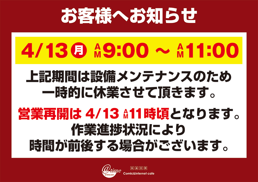 【アットタイム彦根店】臨時休業のお知らせ